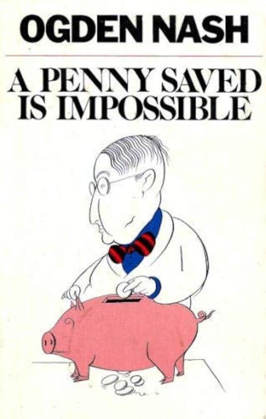 October 9, 2024 a penny saved is impossible a penny saved is impossible ogden nash little brown and company 1981 Share:Share Share on Facebook (Opens in new window) Facebook Share on X (Opens in new window) X Share on Tumblr (Opens in new window) Tumblr Share on Reddit (Opens in new window) Reddit Share on Pinterest (Opens in new window) Pinterest Print (Opens in new window) Print Email a link to a friend (Opens in new window) Email Like Loading...