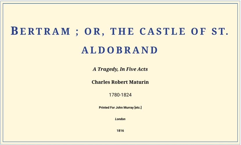 October 12, 2025 Bertram Bertram or the castle of st aldobrand charles robert maturin university of virginia library Share:Share Share on Facebook (Opens in new window) Facebook Share on X (Opens in new window) X Share on Tumblr (Opens in new window) Tumblr Share on Reddit (Opens in new window) Reddit Share on Pinterest (Opens in new window) Pinterest Print (Opens in new window) Print Email a link to a friend (Opens in new window) Email Like Loading...