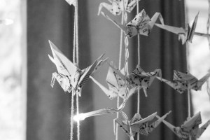 Objection: This makes them look chunky and unappealing, in my opinion, and kills the magical effect of seeing them floating gently as the air moves. Solution 4: Cutting the cranes off the strings and piling them in a shadow box or glass container.